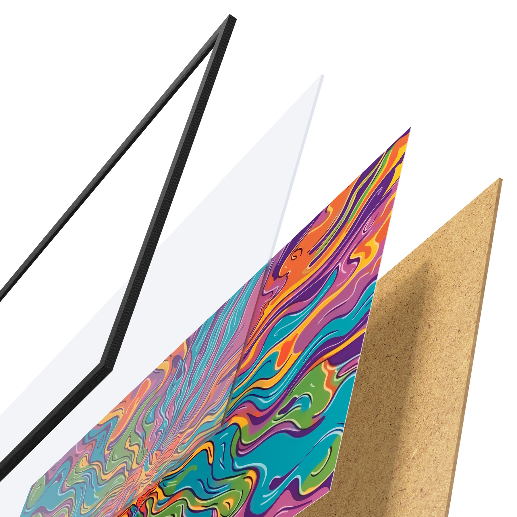 Plakatą sudaro rėmas, pleksiklas, atspausdintas vaizdas ir medžio drožlių plokštės pagrindas. Plakatą galima iš karto pakabinti ant sienos dėl kitoje pusėje esančių laikiklių.