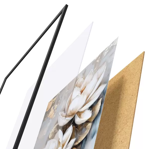 Plakatą sudaro rėmas, pleksiklas, atspausdintas vaizdas ir medžio drožlių plokštės pagrindas. Plakatą galima iš karto pakabinti ant sienos dėl kitoje pusėje esančių laikiklių.