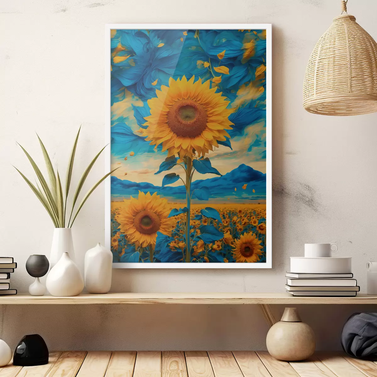 Plakatas Saulėgrąžų laukas virš abstraktaus dangaus f39367