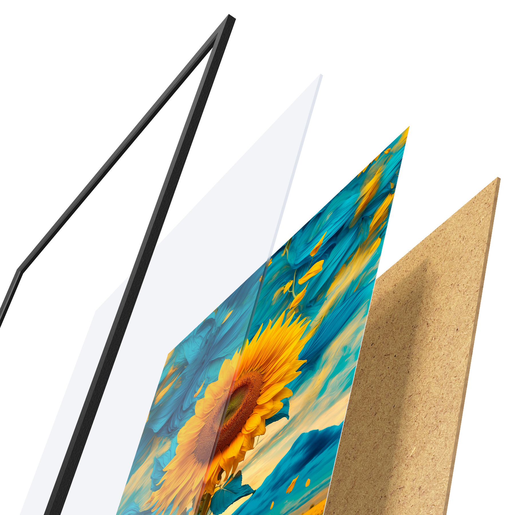 Plakatą sudaro rėmas, pleksiklas, atspausdintas vaizdas ir medžio drožlių plokštės pagrindas. Plakatą galima iš karto pakabinti ant sienos dėl kitoje pusėje esančių laikiklių.