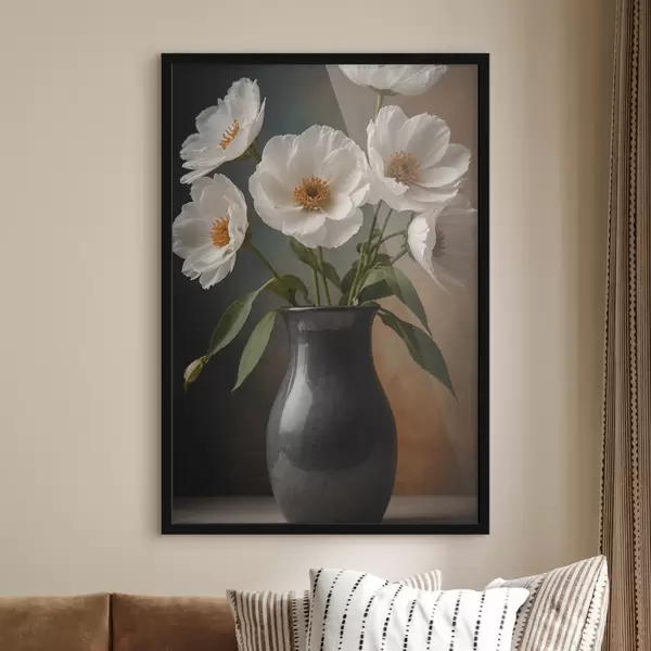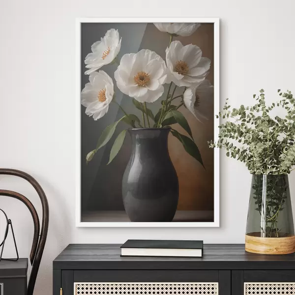 Plakatas Baltos gėlės pilkoje vazoje f39380