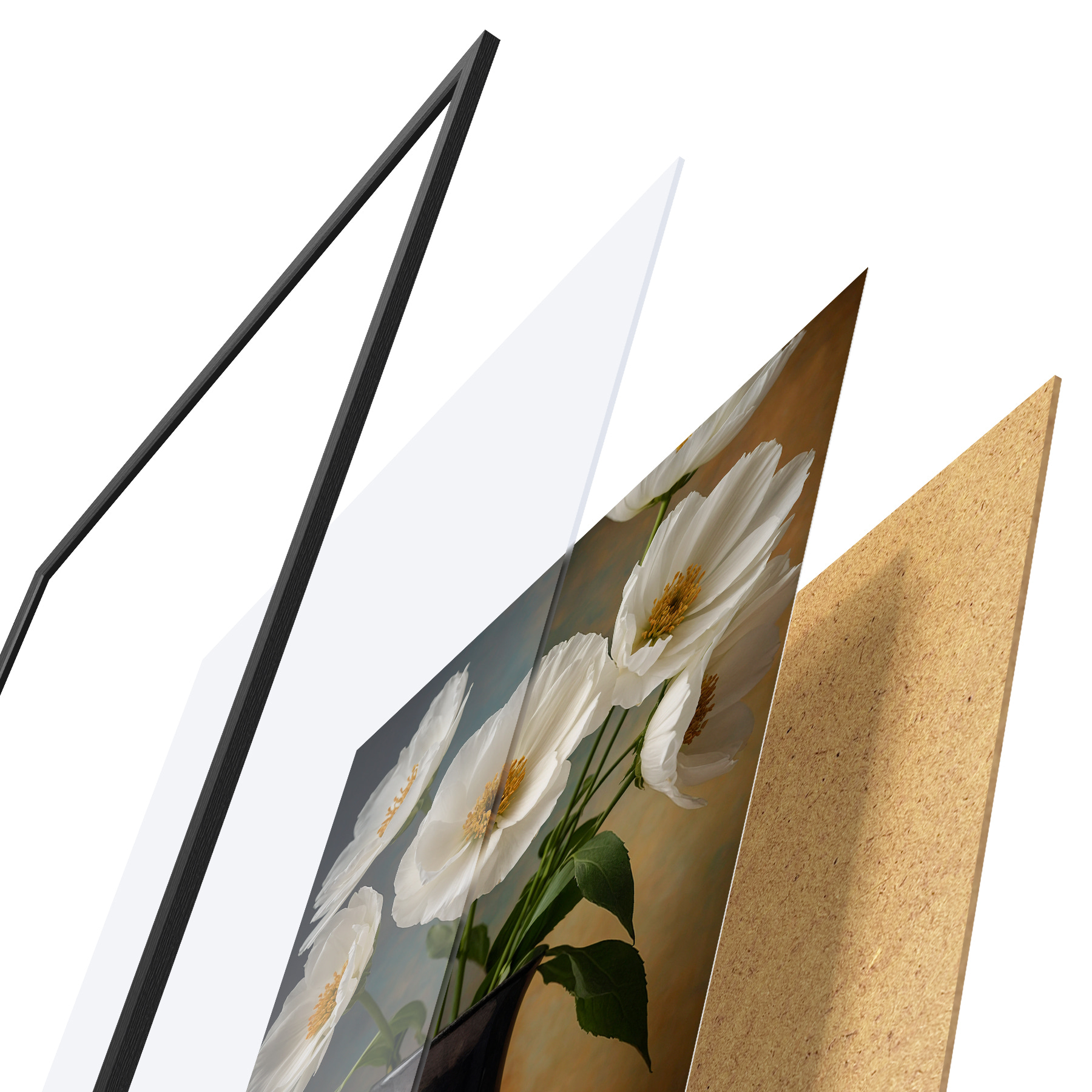 Plakatą sudaro rėmas, pleksiklas, atspausdintas vaizdas ir medžio drožlių plokštės pagrindas. Plakatą galima iš karto pakabinti ant sienos dėl kitoje pusėje esančių laikiklių.