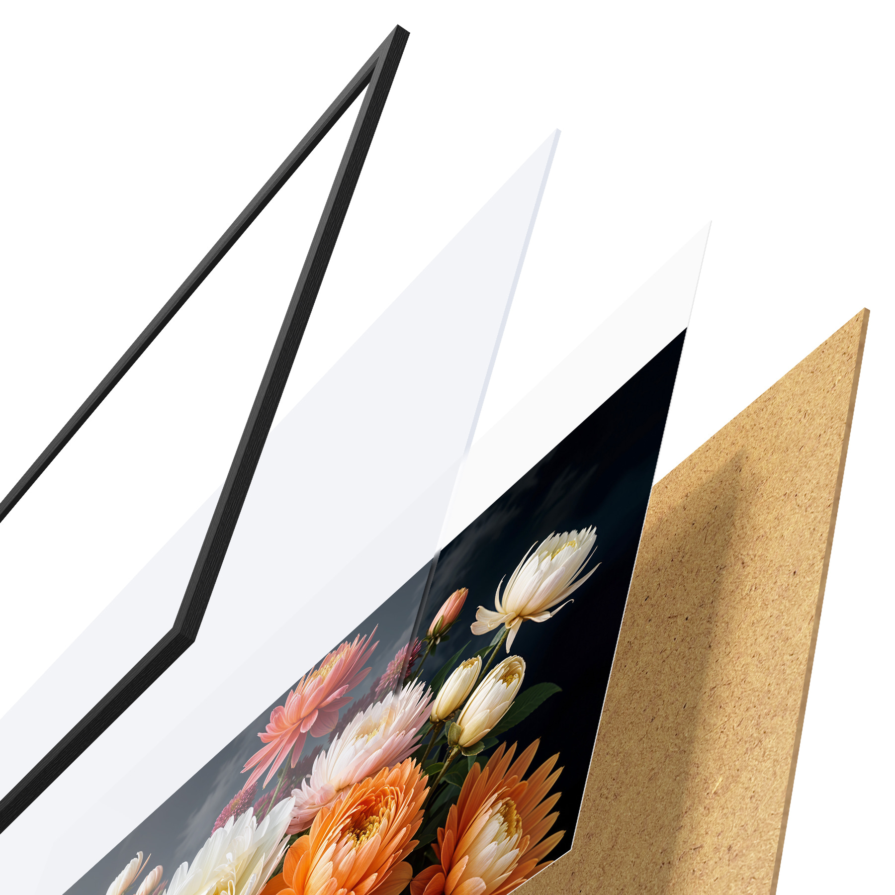 Plakatą sudaro rėmas, pleksiklas, atspausdintas vaizdas ir medžio drožlių plokštės pagrindas. Plakatą galima iš karto pakabinti ant sienos dėl kitoje pusėje esančių laikiklių.