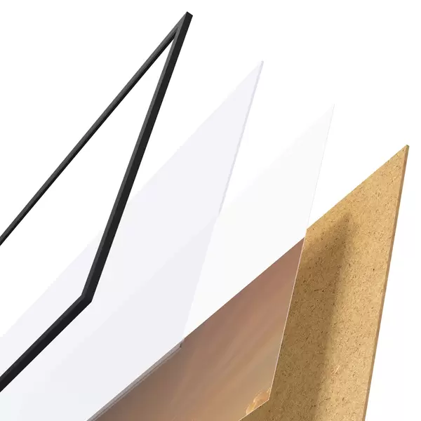 Plakatą sudaro rėmas, pleksiklas, atspausdintas vaizdas ir medžio drožlių plokštės pagrindas. Plakatą galima iš karto pakabinti ant sienos dėl kitoje pusėje esančių laikiklių.