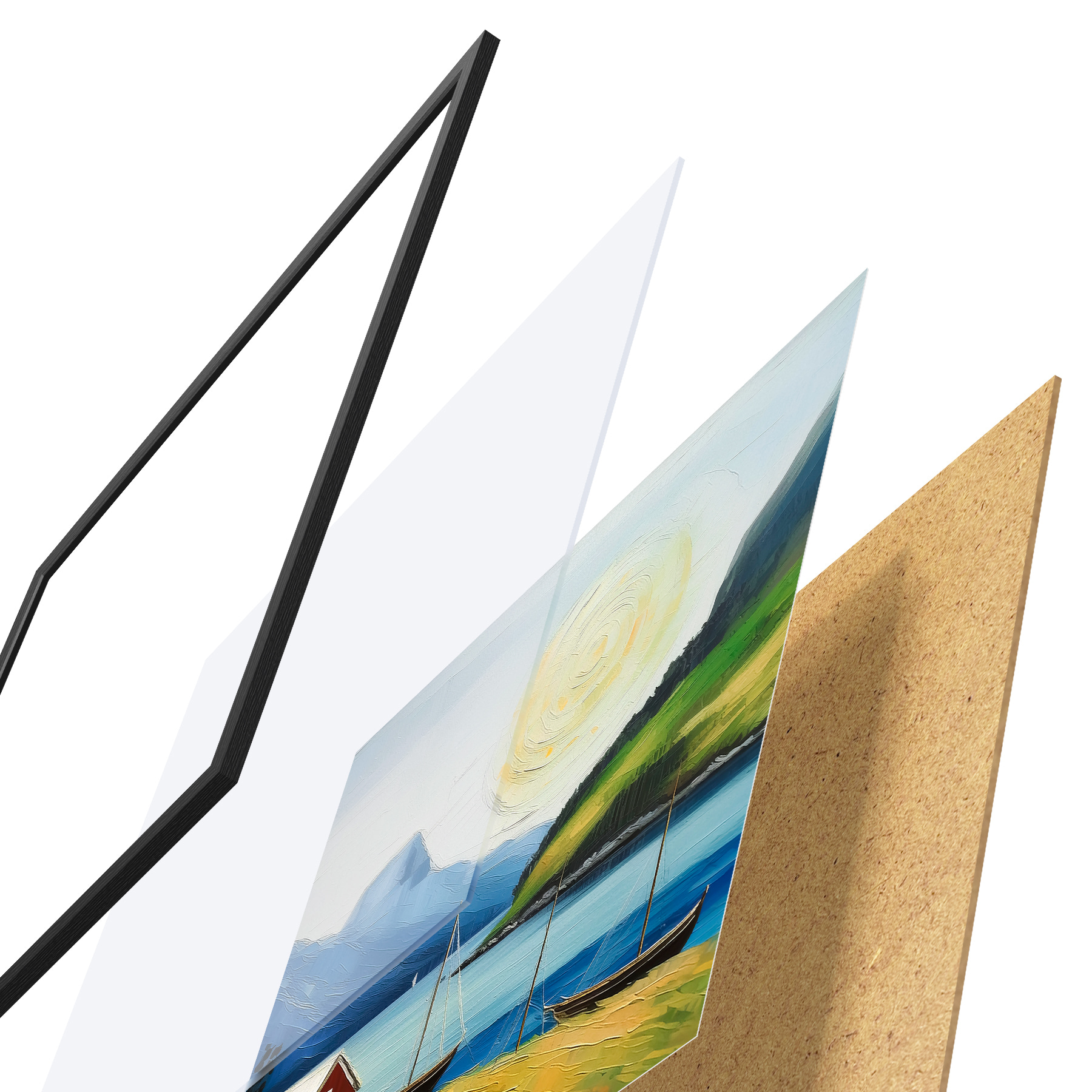 Plakatą sudaro rėmas, pleksiklas, atspausdintas vaizdas ir medžio drožlių plokštės pagrindas. Plakatą galima iš karto pakabinti ant sienos dėl kitoje pusėje esančių laikiklių.
