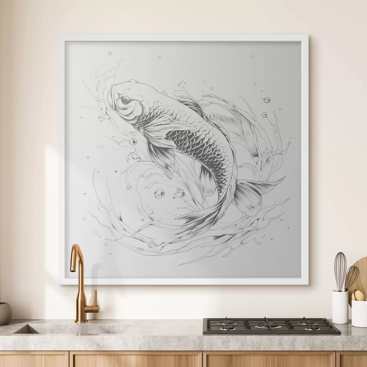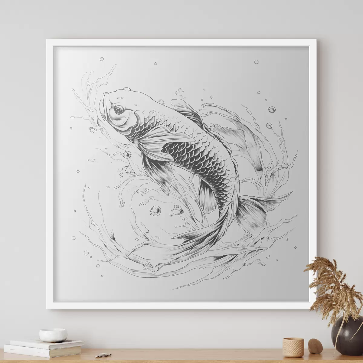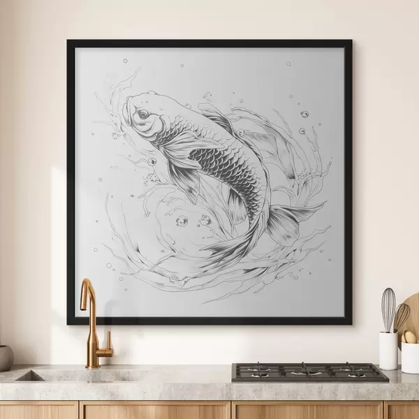 Plakatas Vienspalvis linijinis Koi žuvų piešinys Ne f39433