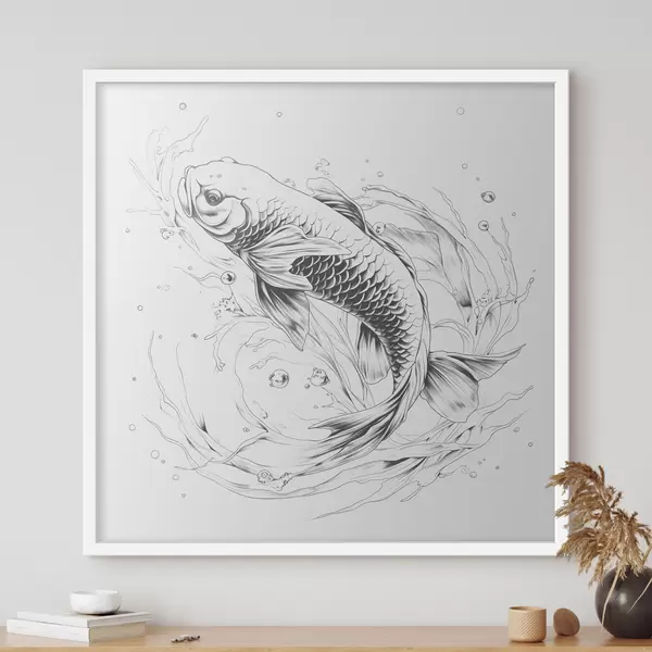 Plakatas Vienspalvis linijinis Koi žuvų piešinys f39433