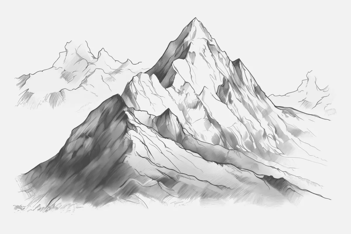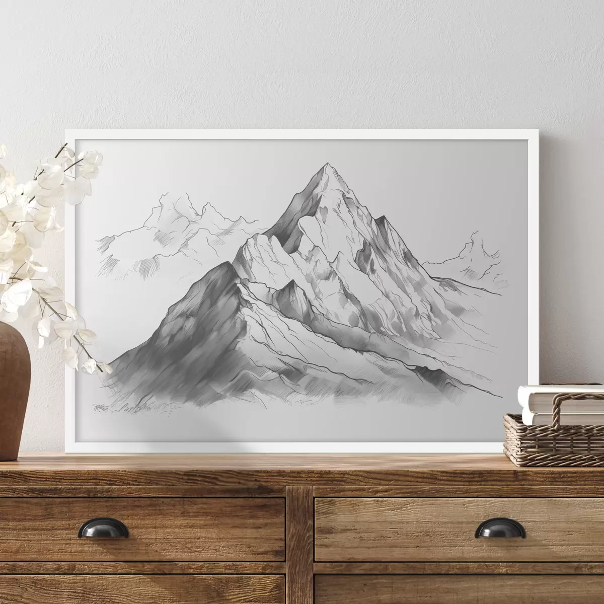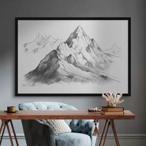 Plakatas Kalnų viršūnių ir uolų vienspalvių linijų piešinys f39434