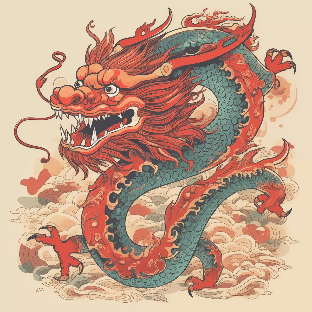 Plakatas Kinijos stiliaus raudonasis drakonas, rytietiškas f39439