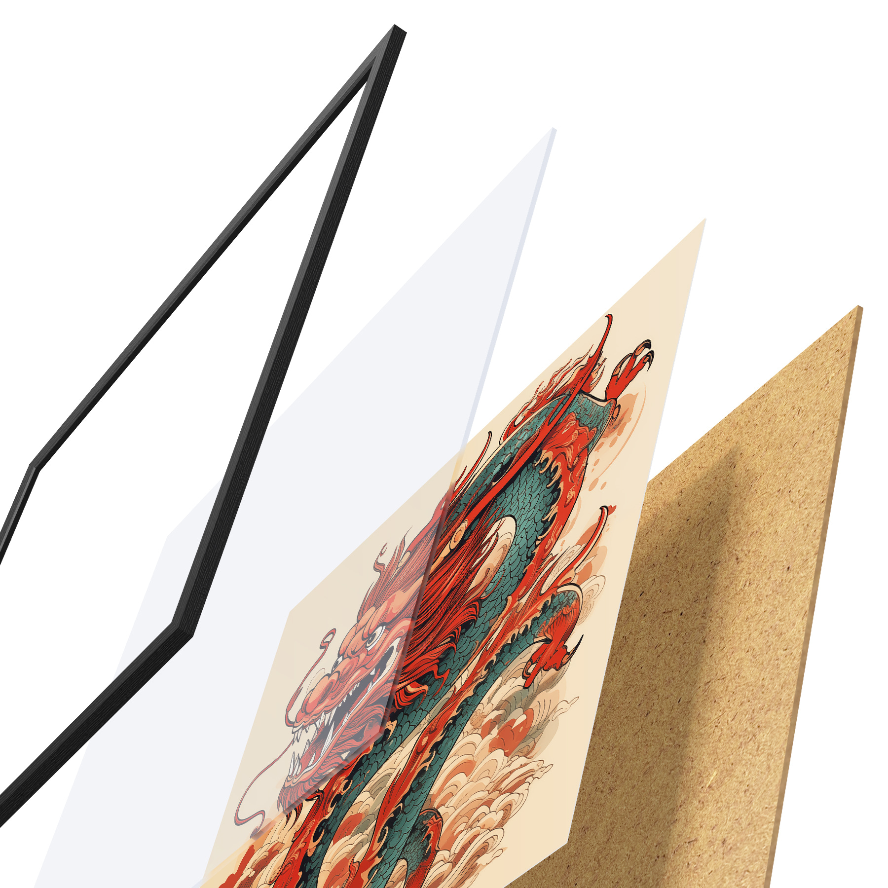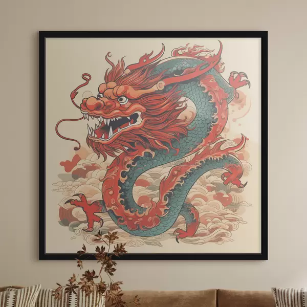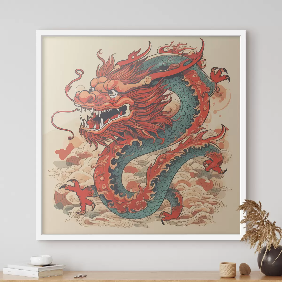 Plakatas Kinijos stiliaus raudonasis drakonas, rytietiškas Ne f39439