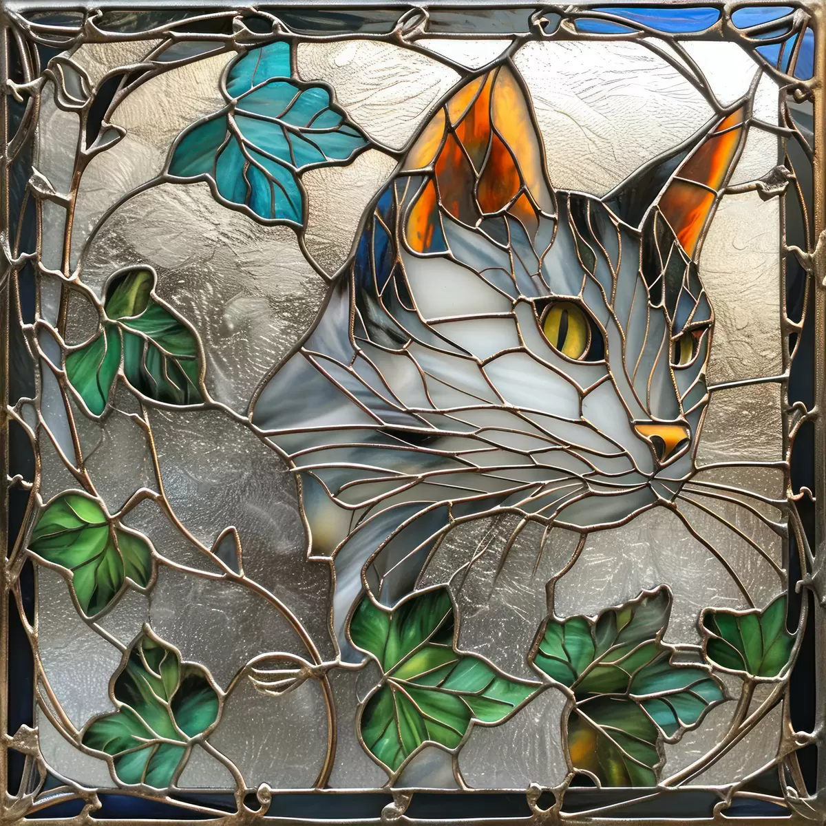 Plakatas Vitražo įkvėptas meno kūrinys: katė tarp rudens lapų Ne f39448
