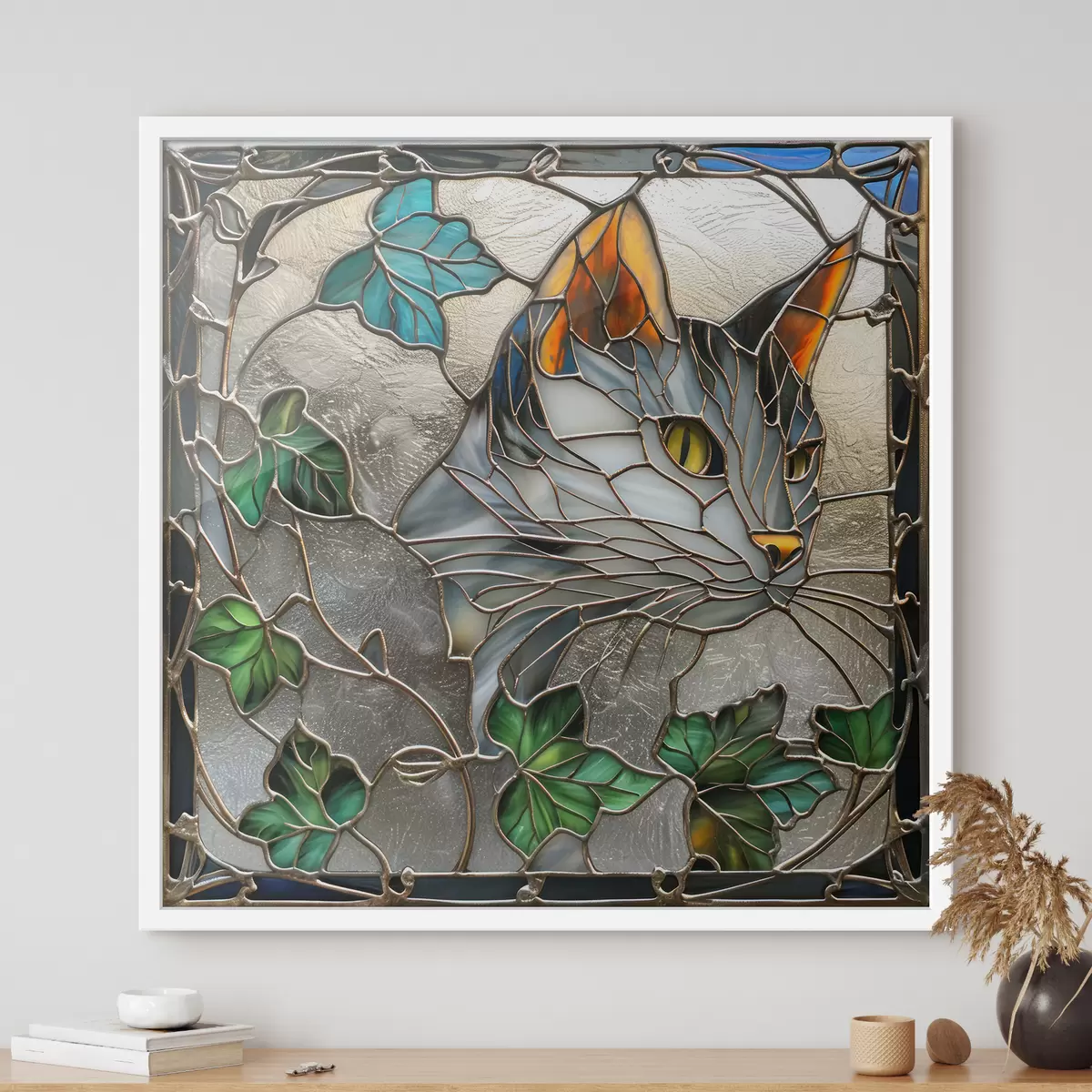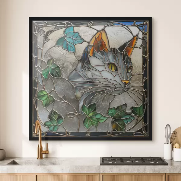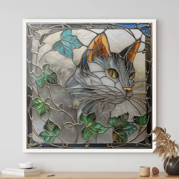 Plakatas Vitražo įkvėptas meno kūrinys: katė tarp rudens lapų f39448