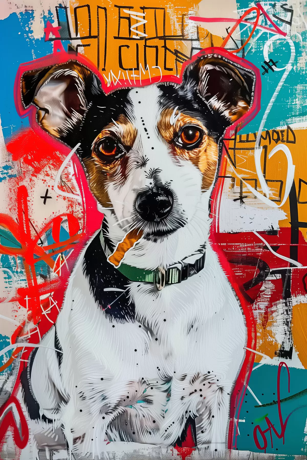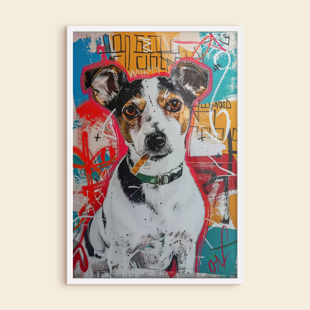 Plakatas Graffiti šuniuko globėjas: smalsus Džeko Raselio terjeras gyvame chaose f39456