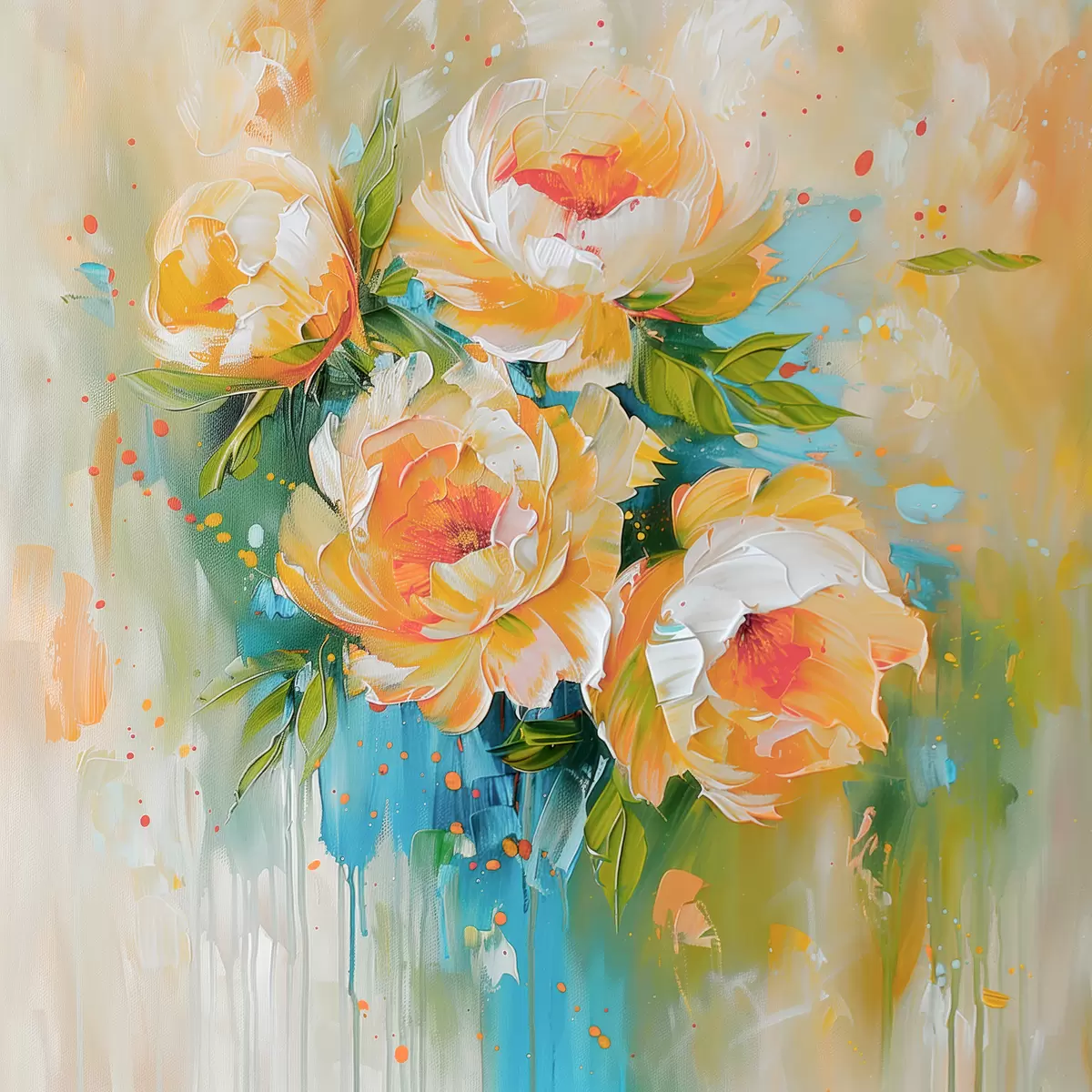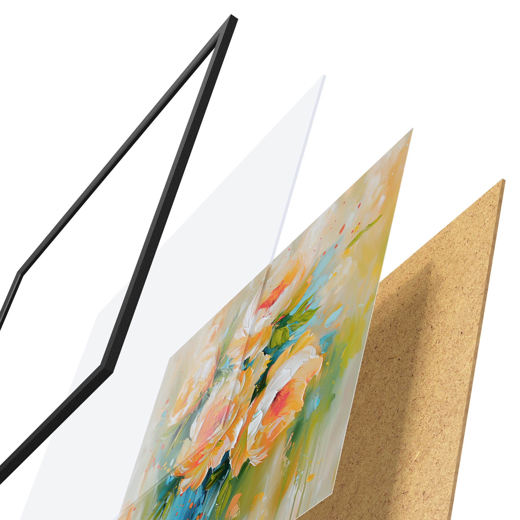Plakatas Minkšti ir subtilūs žiedai ryškioje abstrakčioje tapyboje f39461