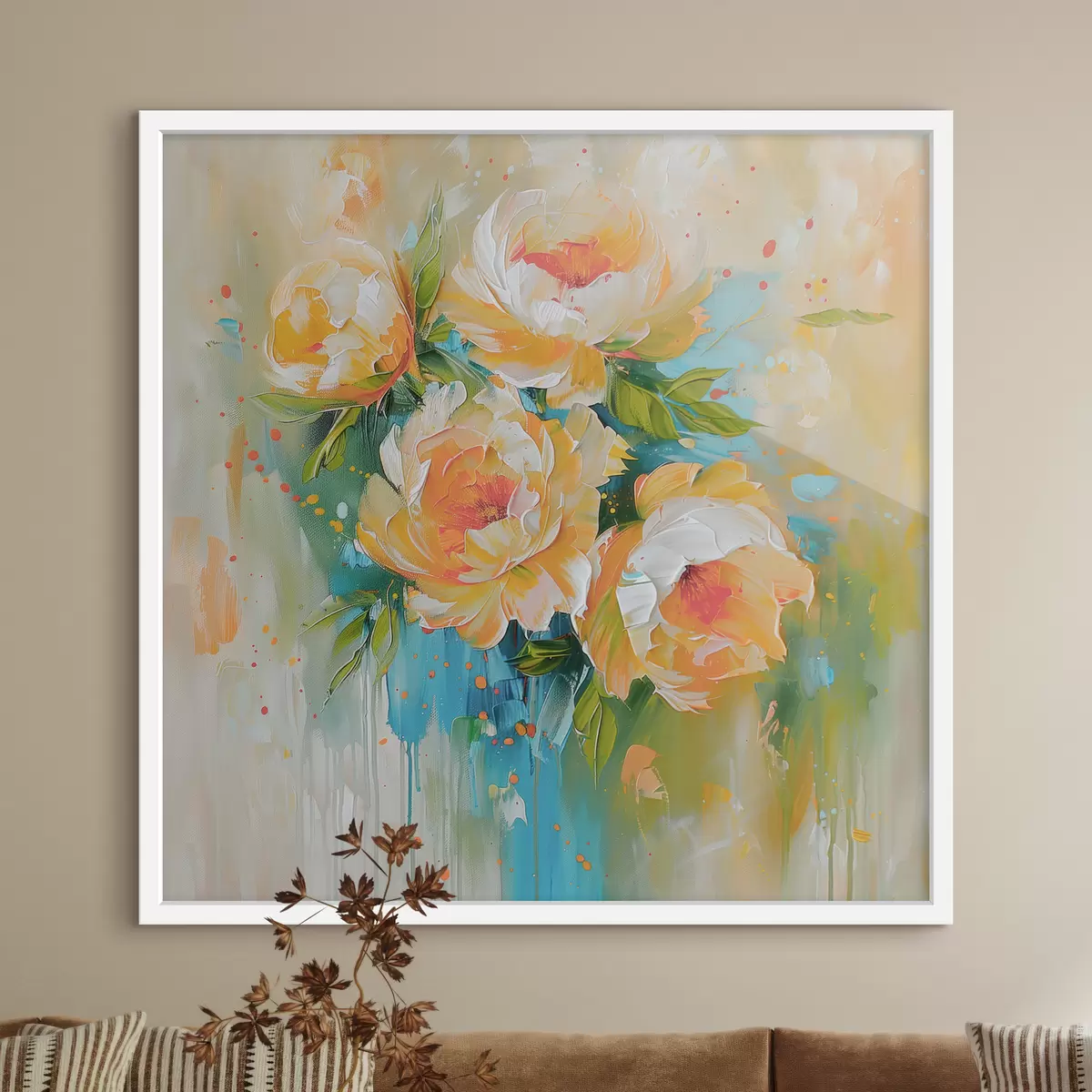 Plakatas Minkšti ir subtilūs žiedai ryškioje abstrakčioje tapyboje Ne f39461