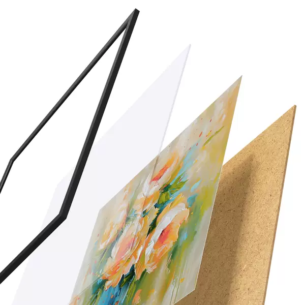 Plakatą sudaro rėmas, pleksiklas, atspausdintas vaizdas ir medžio drožlių plokštės pagrindas. Plakatą galima iš karto pakabinti ant sienos dėl kitoje pusėje esančių laikiklių.