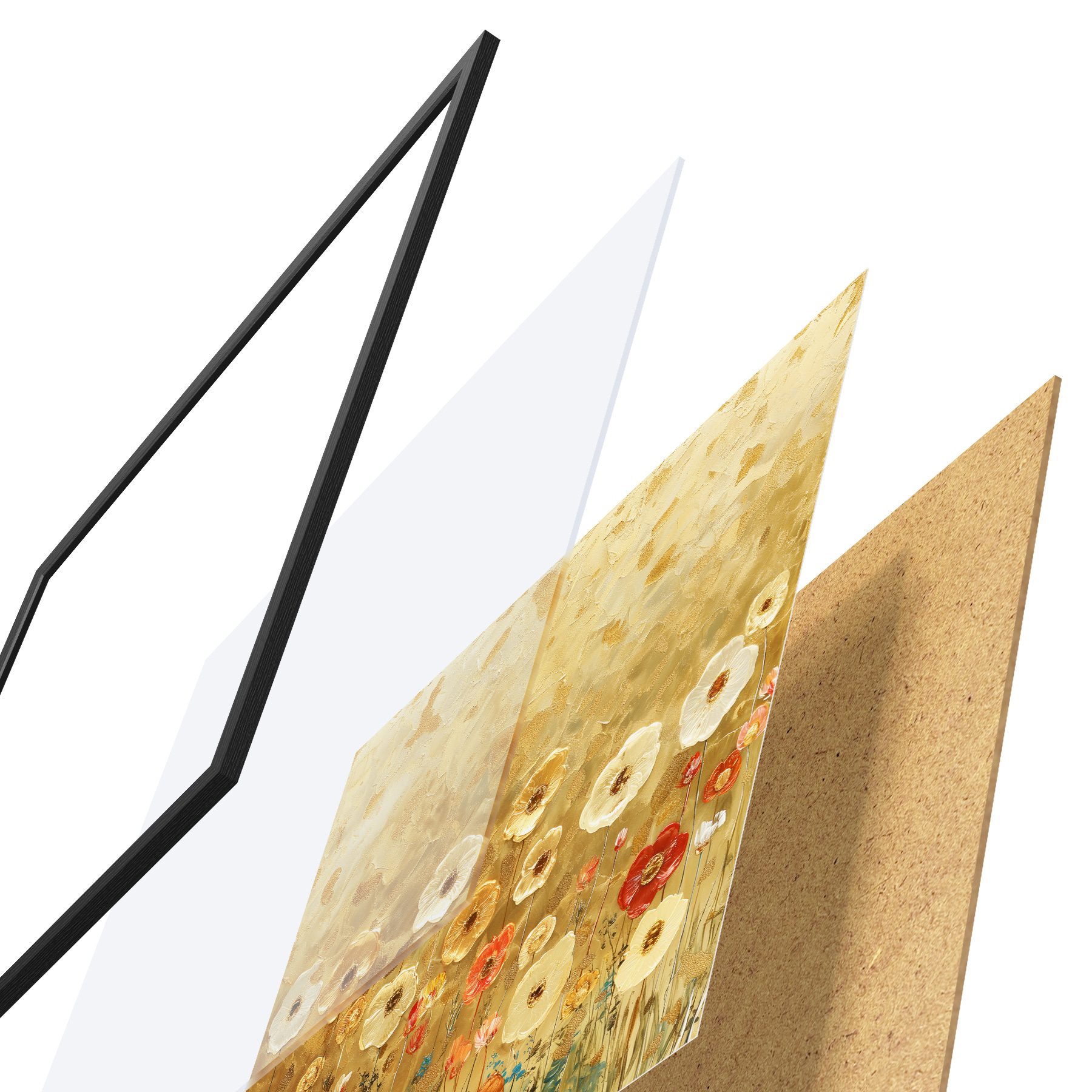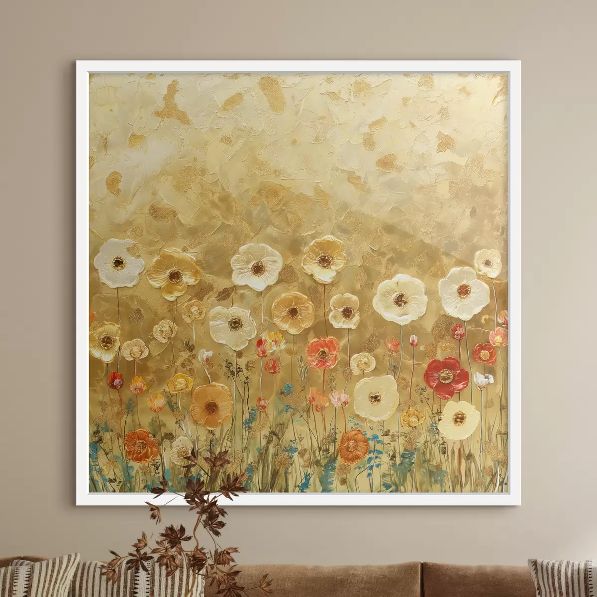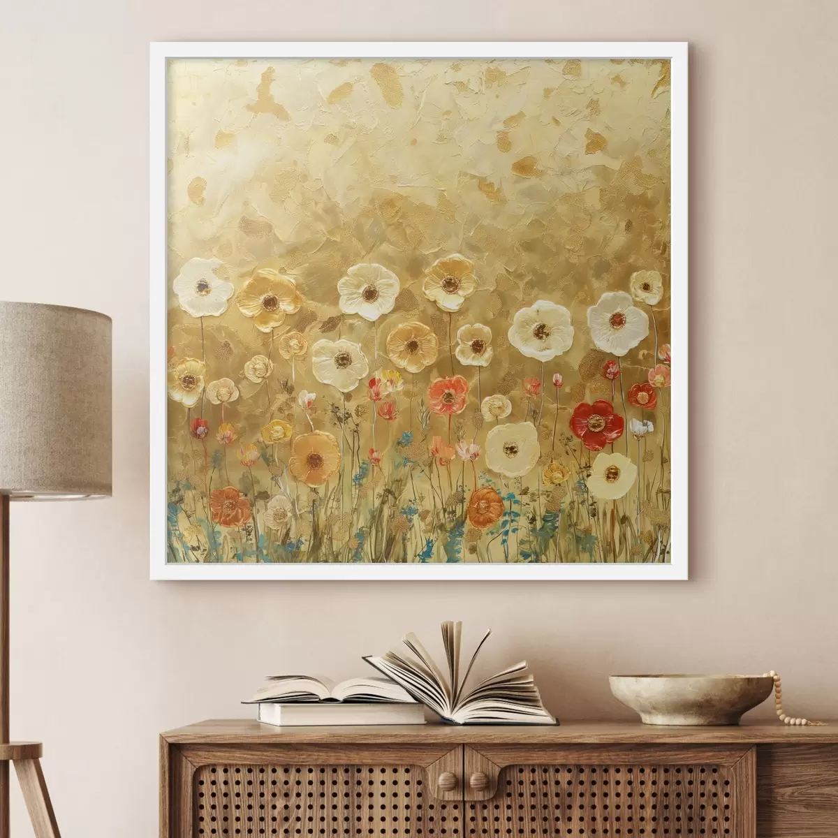 Plakatas Klimto stiliaus pieva: subtilios pastelinės gėlės su susiliejančia tekstūra f39464
