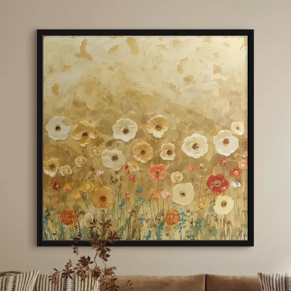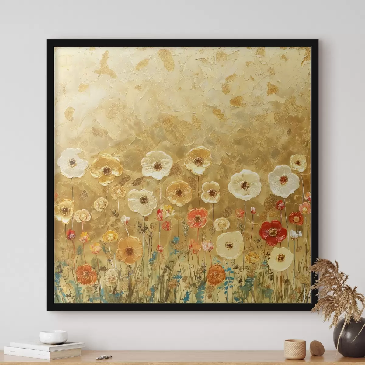 Plakatas Klimto stiliaus pieva: subtilios pastelinės gėlės su susiliejančia tekstūra f39464