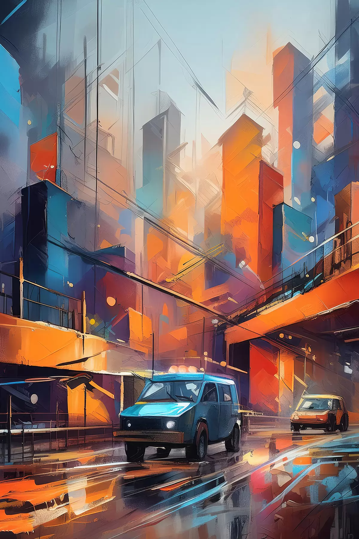 Plakatas gatvė mieste su spalvomis, abstrakcija f39473