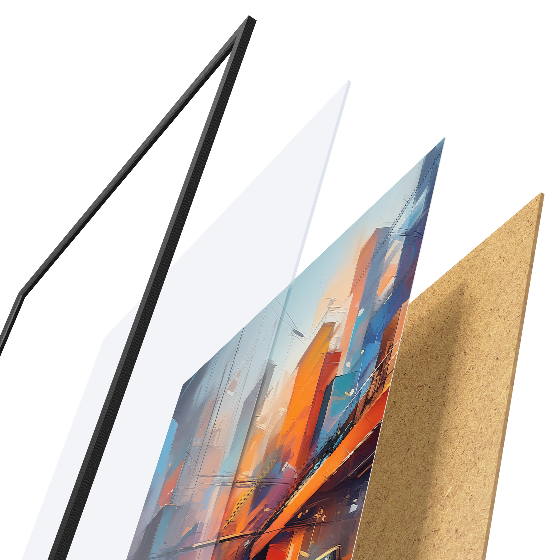 Plakatą sudaro rėmas, pleksiklas, atspausdintas vaizdas ir medžio drožlių plokštės pagrindas. Plakatą galima iš karto pakabinti ant sienos dėl kitoje pusėje esančių laikiklių.