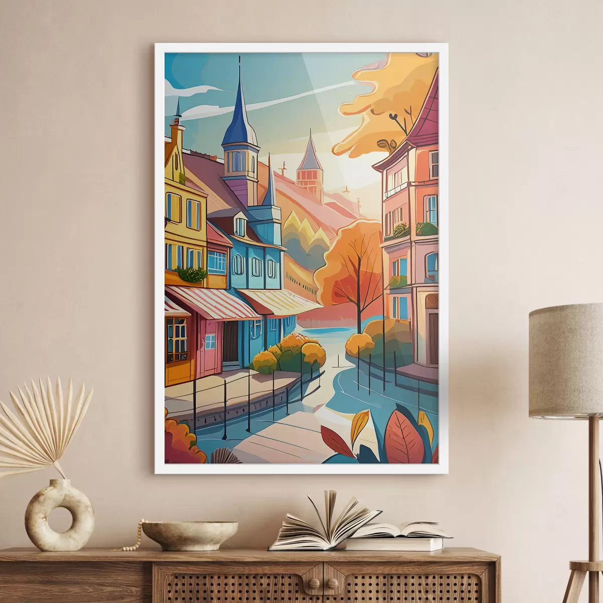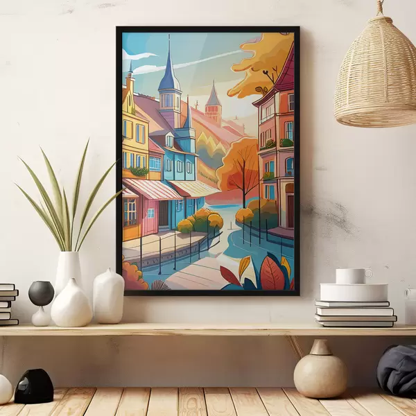 Plakatas miesto peizažas su ryškiomis spalvomis f39481