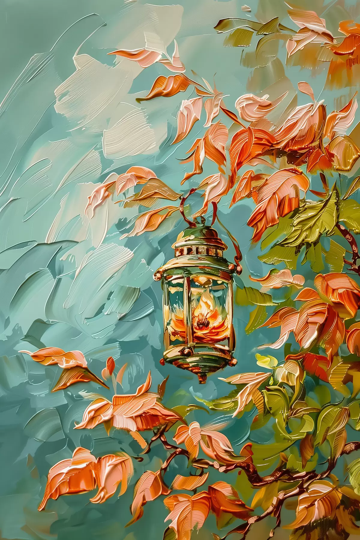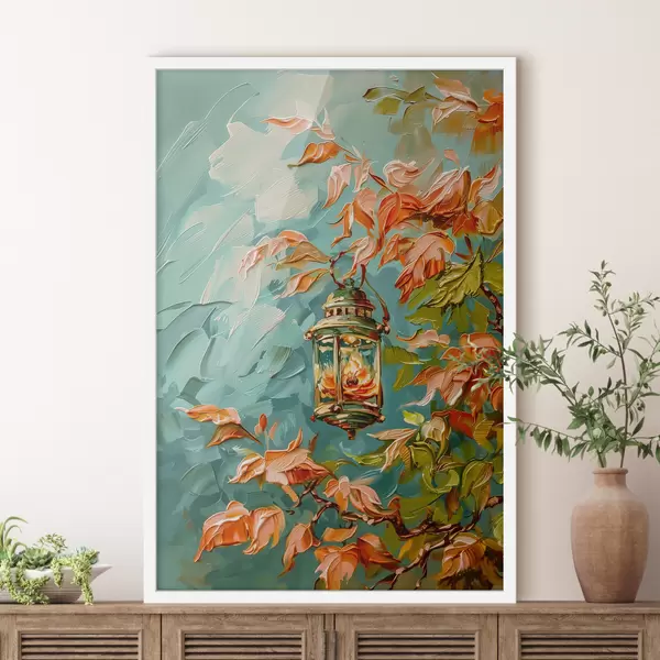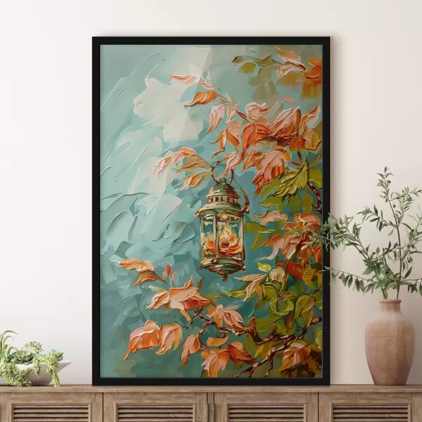 Plakatas Žibintas tarp medžių lapų Ne f39484