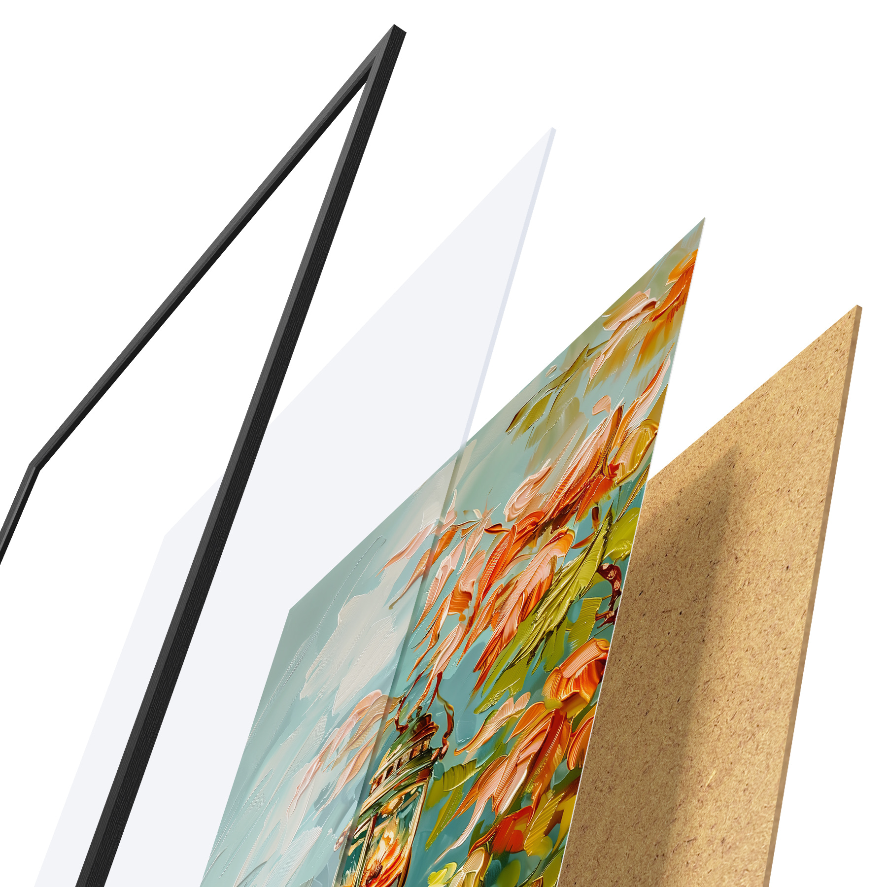 Plakatą sudaro rėmas, pleksiklas, atspausdintas vaizdas ir medžio drožlių plokštės pagrindas. Plakatą galima iš karto pakabinti ant sienos dėl kitoje pusėje esančių laikiklių.