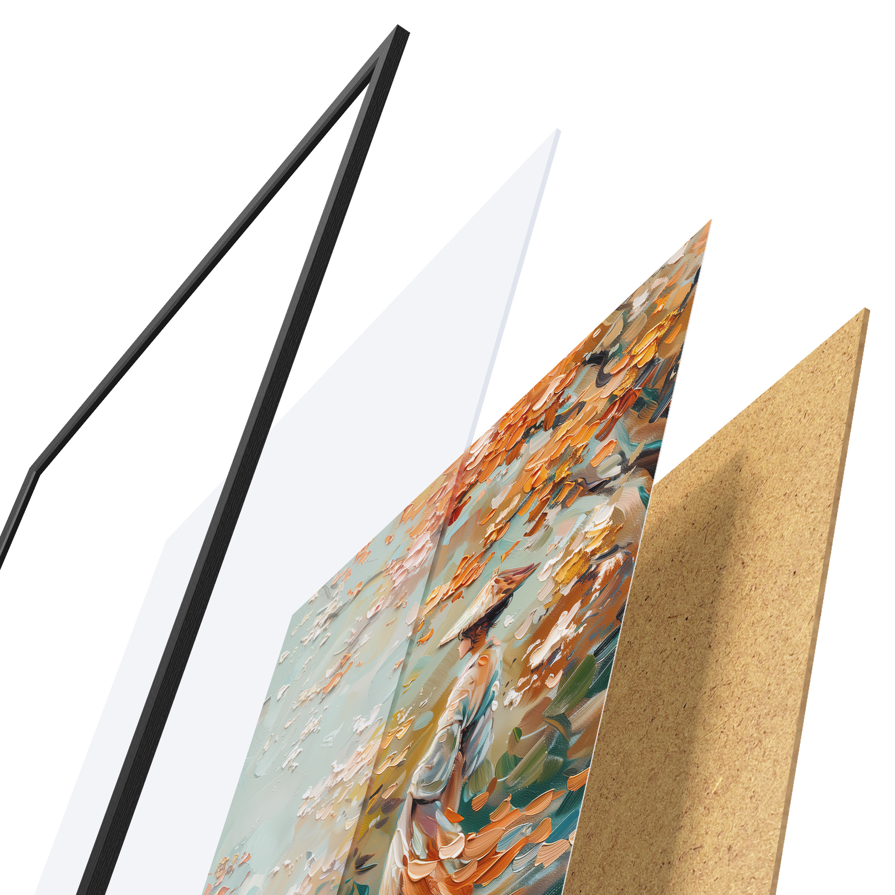 Plakatą sudaro rėmas, pleksiklas, atspausdintas vaizdas ir medžio drožlių plokštės pagrindas. Plakatą galima iš karto pakabinti ant sienos dėl kitoje pusėje esančių laikiklių.