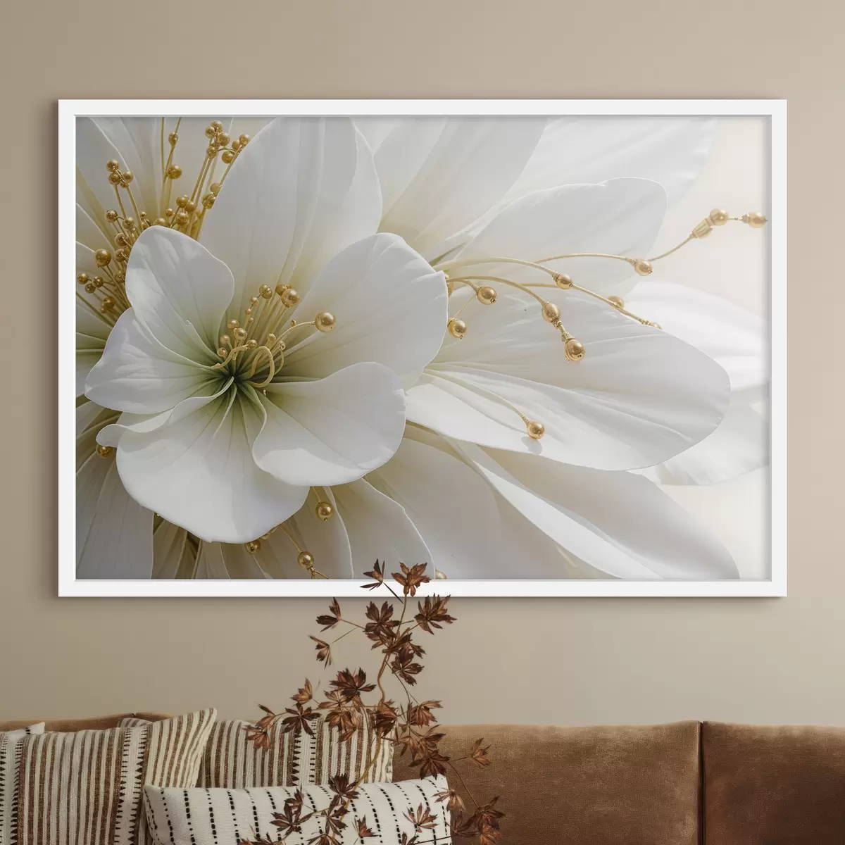 Plakatas Didelės baltos gėlės su švelniais žiedlapiais stambiu planu f39507