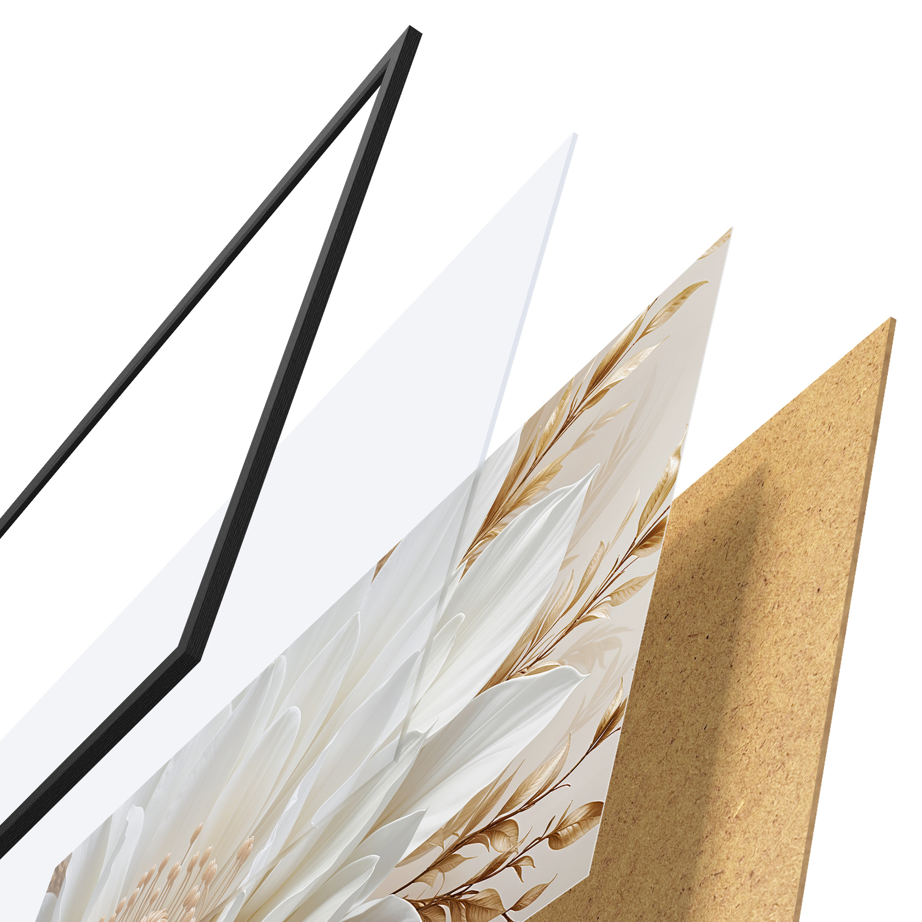 Plakatą sudaro rėmas, pleksiklas, atspausdintas vaizdas ir medžio drožlių plokštės pagrindas. Plakatą galima iš karto pakabinti ant sienos dėl kitoje pusėje esančių laikiklių.