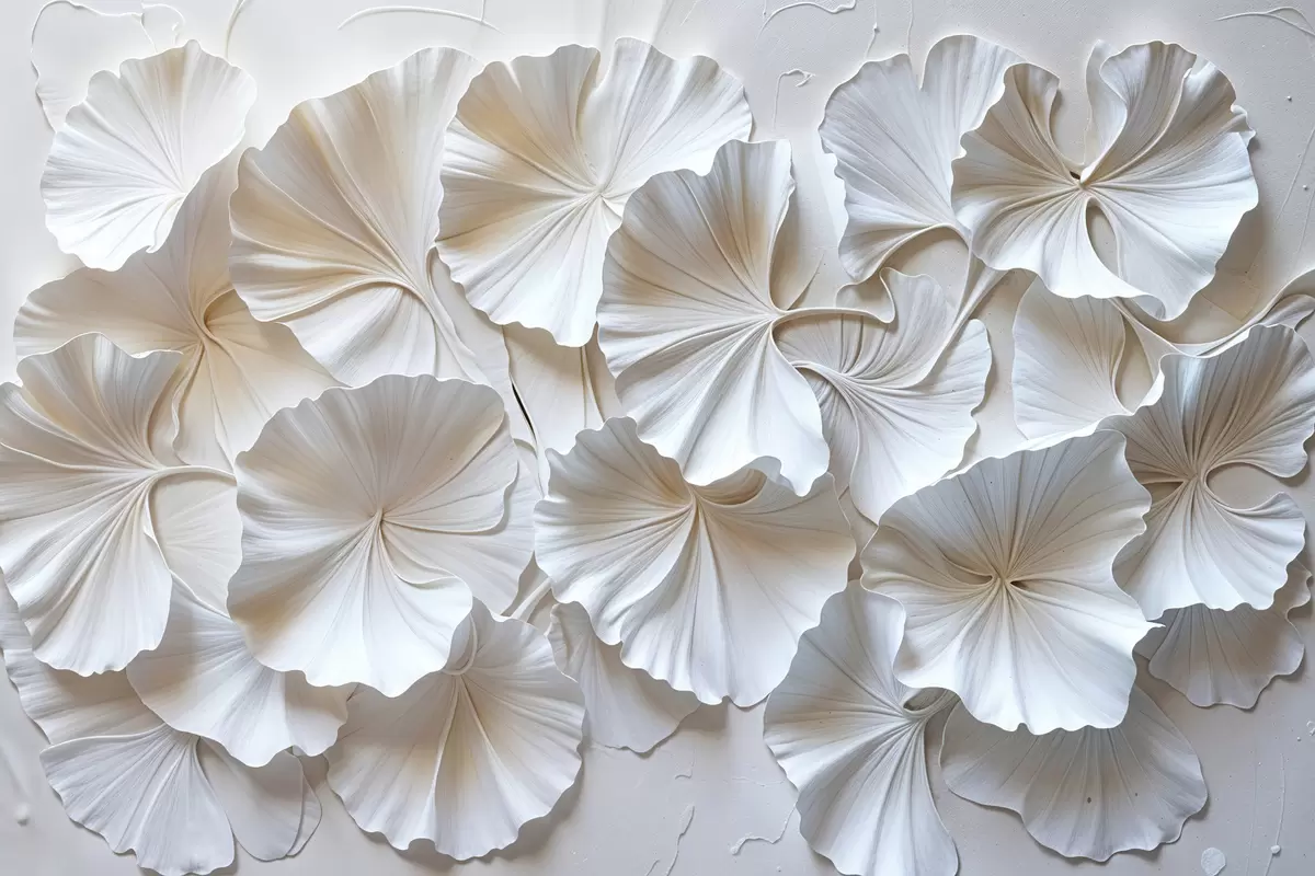 Plakatas Subtiliai baltos gėlės, išdėstytos natūraliu, organišku raštu šviesiame fone Ne f39510