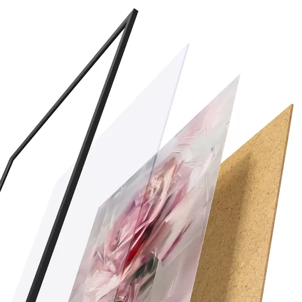 Plakatą sudaro rėmas, pleksiklas, atspausdintas vaizdas ir medžio drožlių plokštės pagrindas. Plakatą galima iš karto pakabinti ant sienos dėl kitoje pusėje esančių laikiklių.