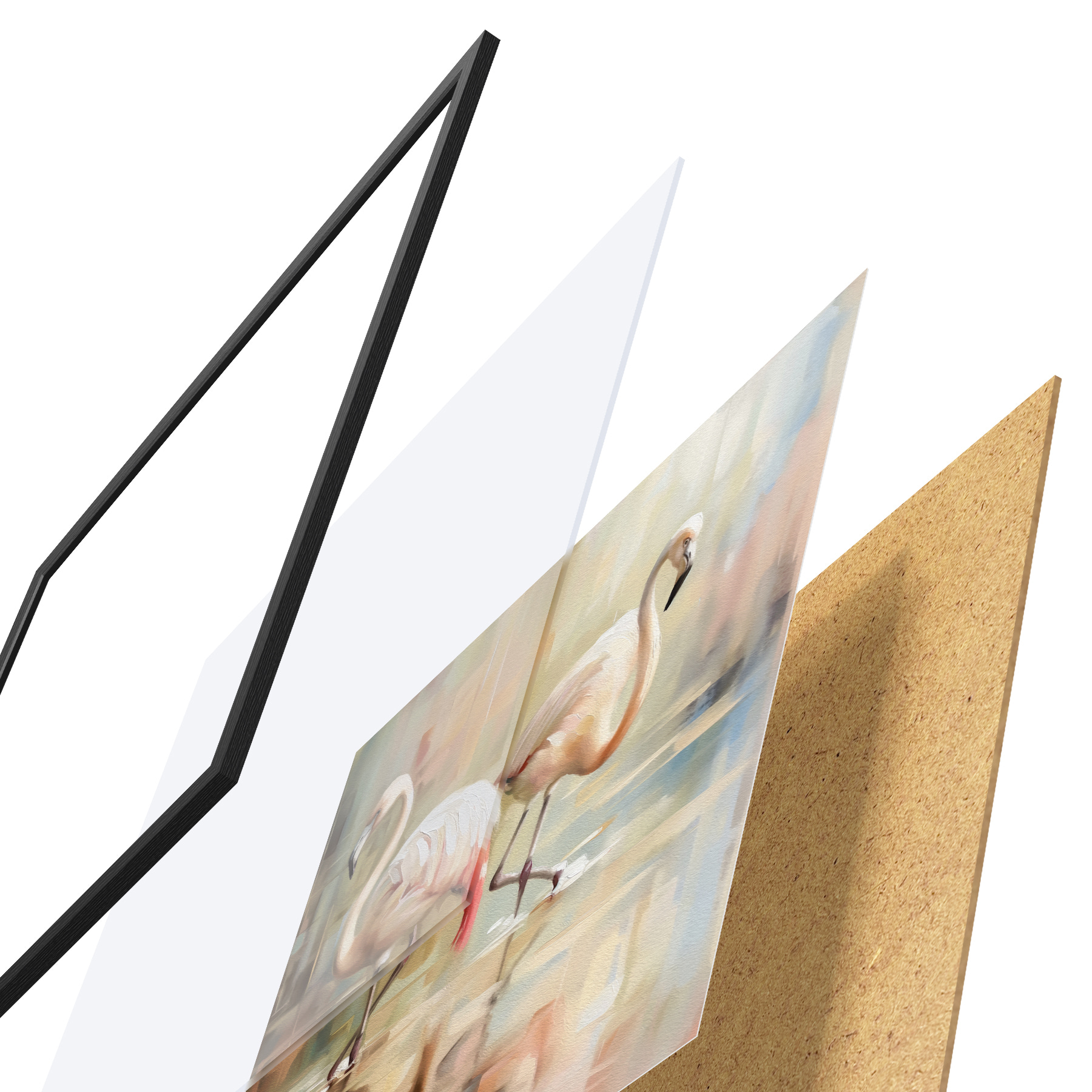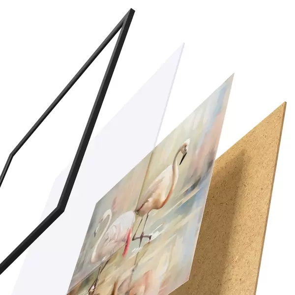Plakatą sudaro rėmas, pleksiklas, atspausdintas vaizdas ir medžio drožlių plokštės pagrindas. Plakatą galima iš karto pakabinti ant sienos dėl kitoje pusėje esančių laikiklių.