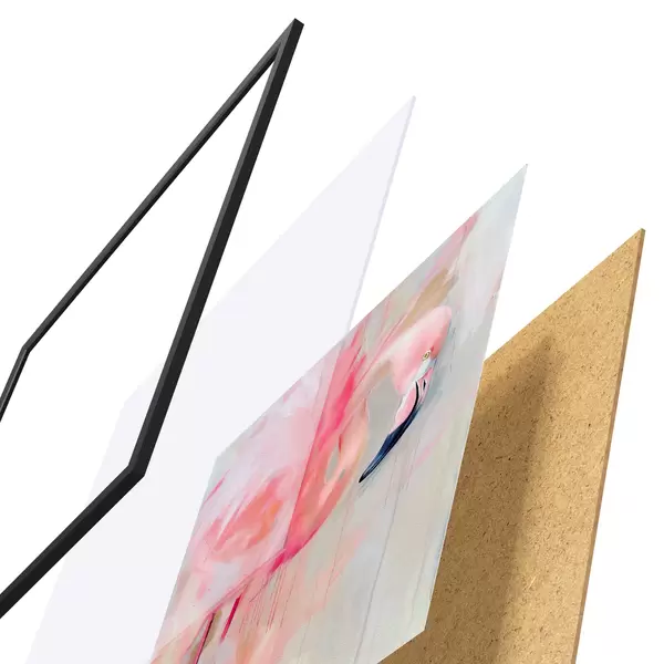 Plakatą sudaro rėmas, pleksiklas, atspausdintas vaizdas ir medžio drožlių plokštės pagrindas. Plakatą galima iš karto pakabinti ant sienos dėl kitoje pusėje esančių laikiklių.