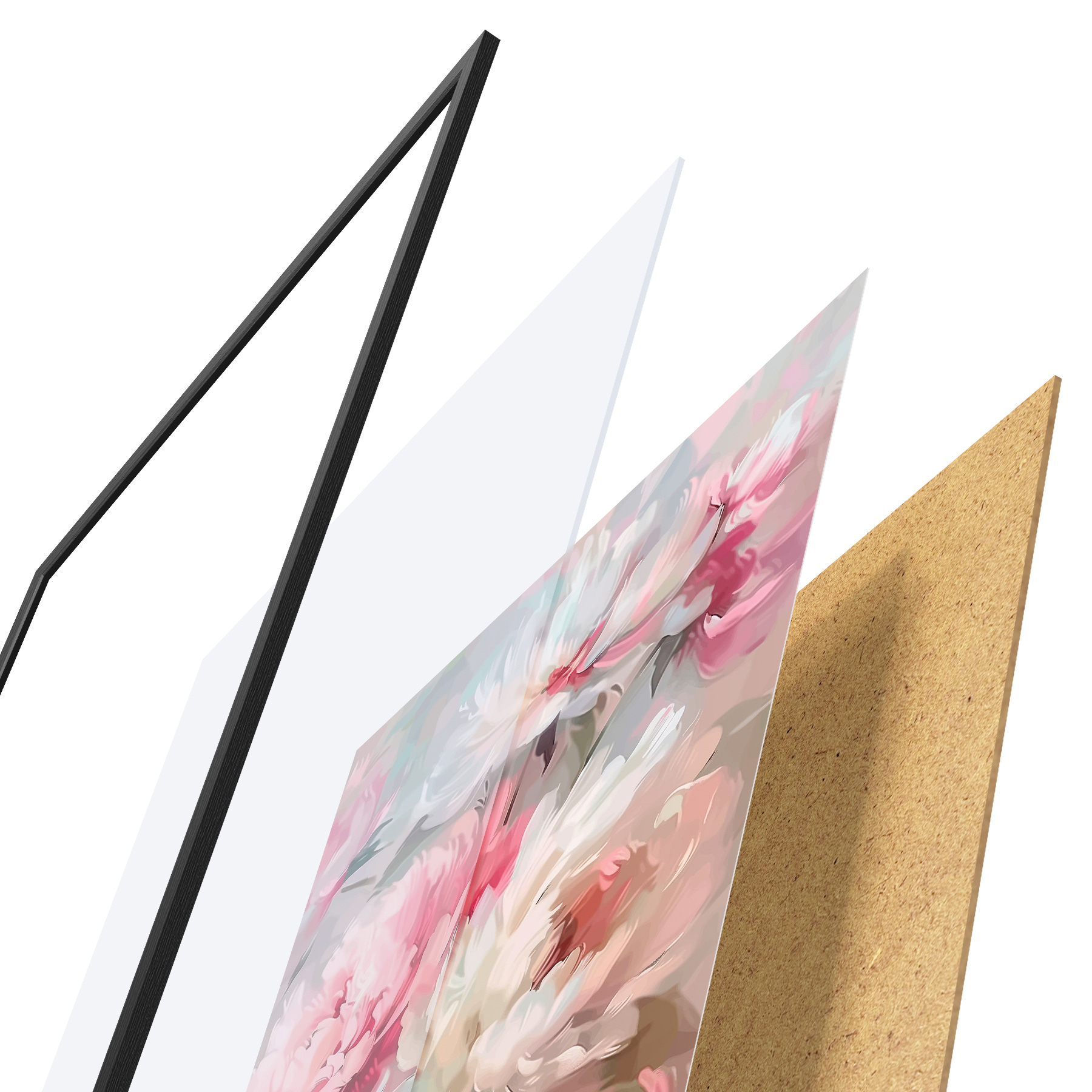 Plakatą sudaro rėmas, pleksiklas, atspausdintas vaizdas ir medžio drožlių plokštės pagrindas. Plakatą galima iš karto pakabinti ant sienos dėl kitoje pusėje esančių laikiklių.