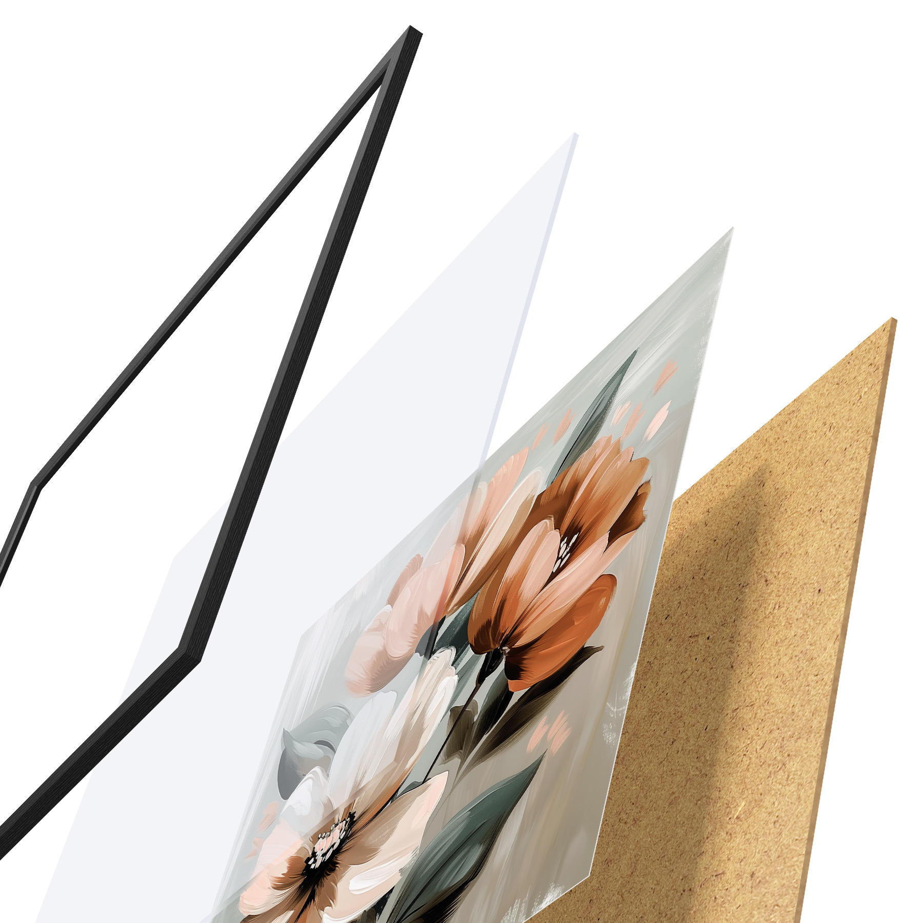 Plakatą sudaro rėmas, pleksiklas, atspausdintas vaizdas ir medžio drožlių plokštės pagrindas. Plakatą galima iš karto pakabinti ant sienos dėl kitoje pusėje esančių laikiklių.