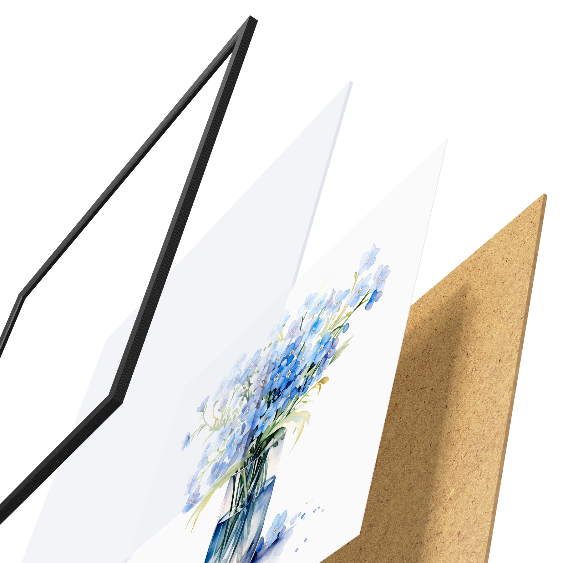 Plakatas Mėlynų gėlių puokštė skaidrioje akvarelėje vazoje Ne f39564