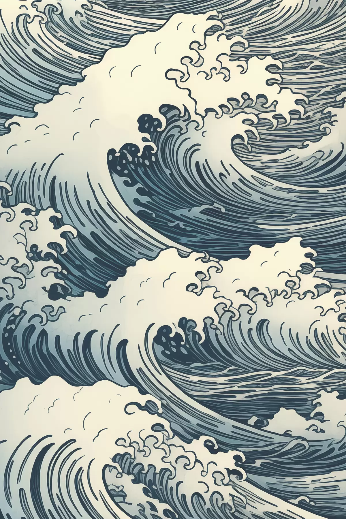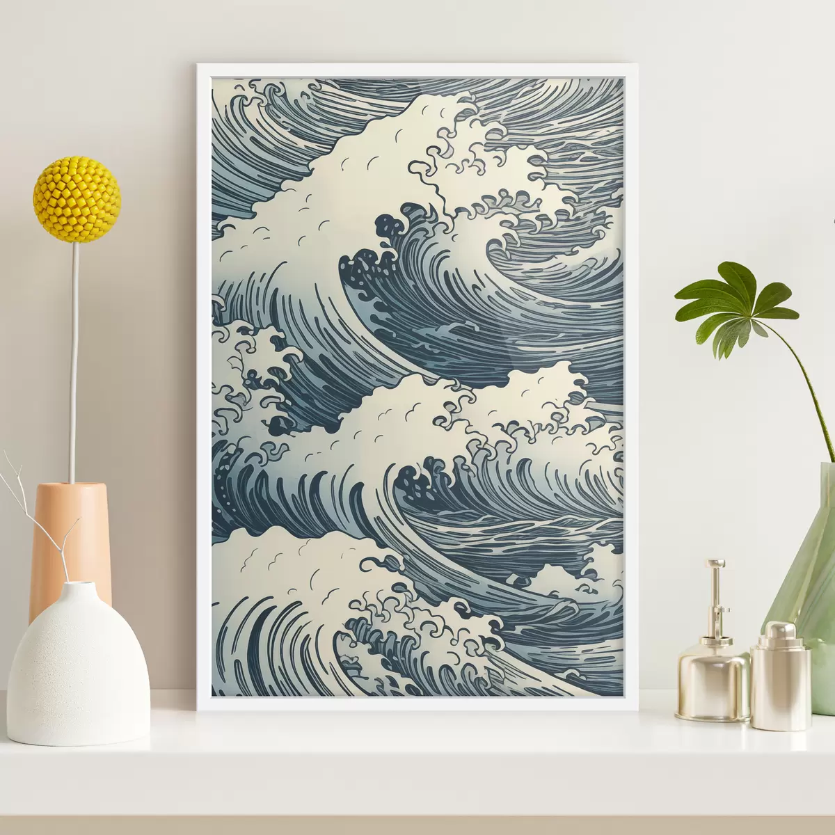 Plakatas Jūros bangų akvarelė rytietišku stiliumi f39569