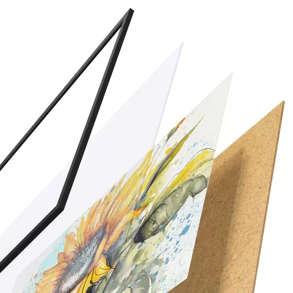 Plakatą sudaro rėmas, pleksiklas, atspausdintas vaizdas ir medžio drožlių plokštės pagrindas. Plakatą galima iš karto pakabinti ant sienos dėl kitoje pusėje esančių laikiklių.