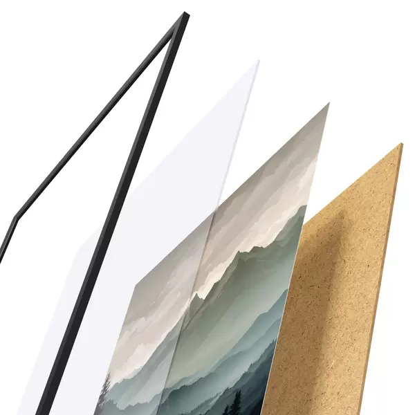 Plakatą sudaro rėmas, pleksiklas, atspausdintas vaizdas ir medžio drožlių plokštės pagrindas. Plakatą galima iš karto pakabinti ant sienos dėl kitoje pusėje esančių laikiklių.