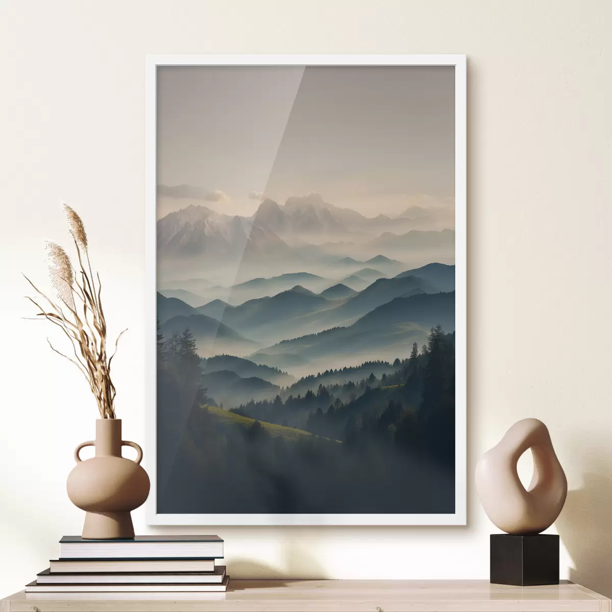 Plakatas Vaizdas į miglotus kalnus Ne f39596
