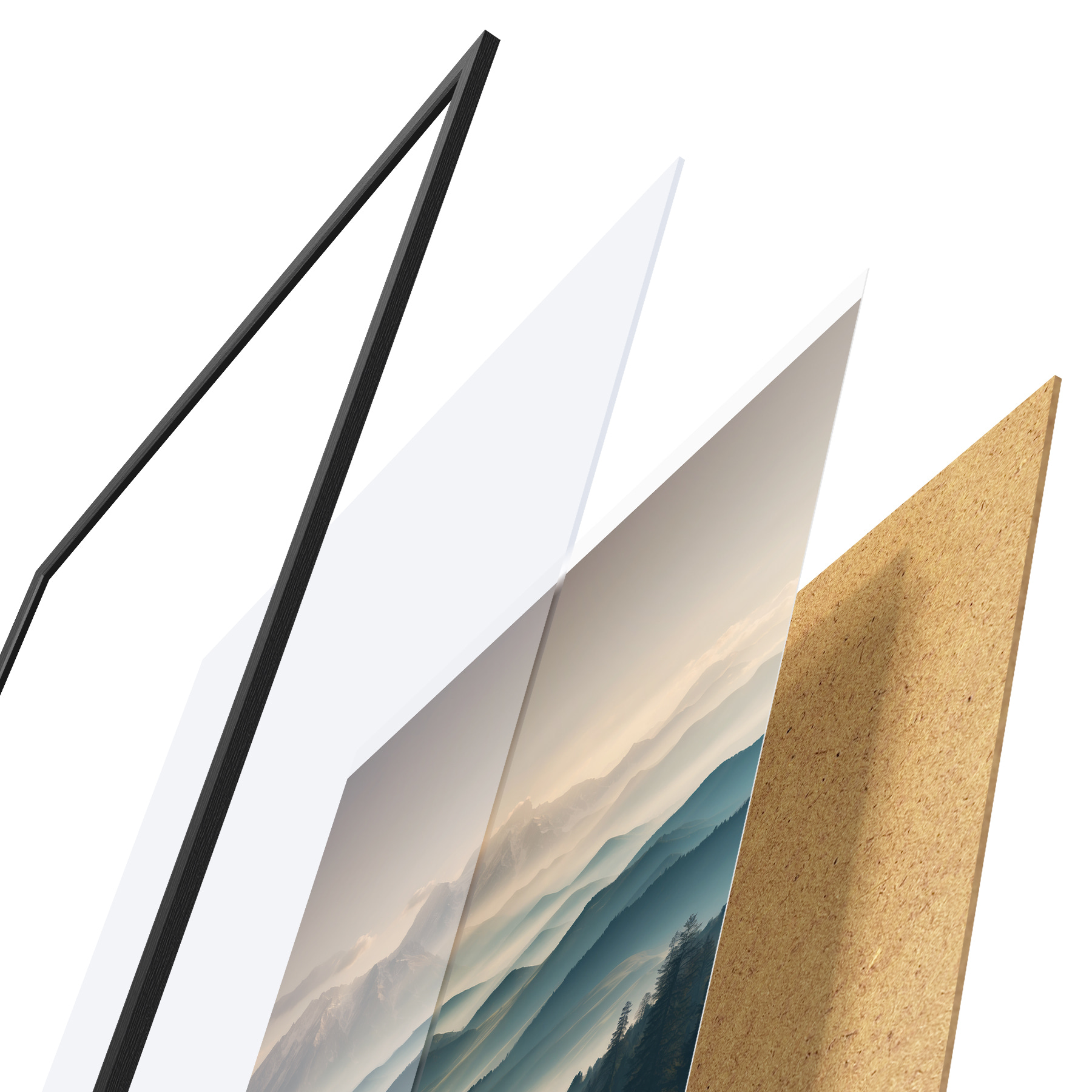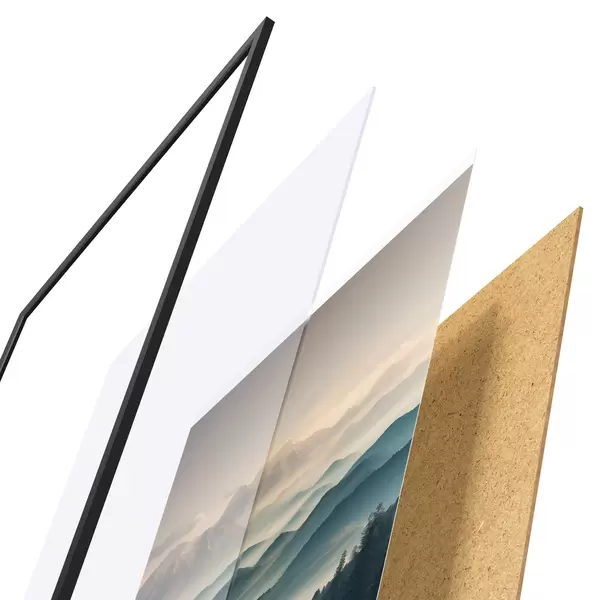 Plakatą sudaro rėmas, pleksiklas, atspausdintas vaizdas ir medžio drožlių plokštės pagrindas. Plakatą galima iš karto pakabinti ant sienos dėl kitoje pusėje esančių laikiklių.
