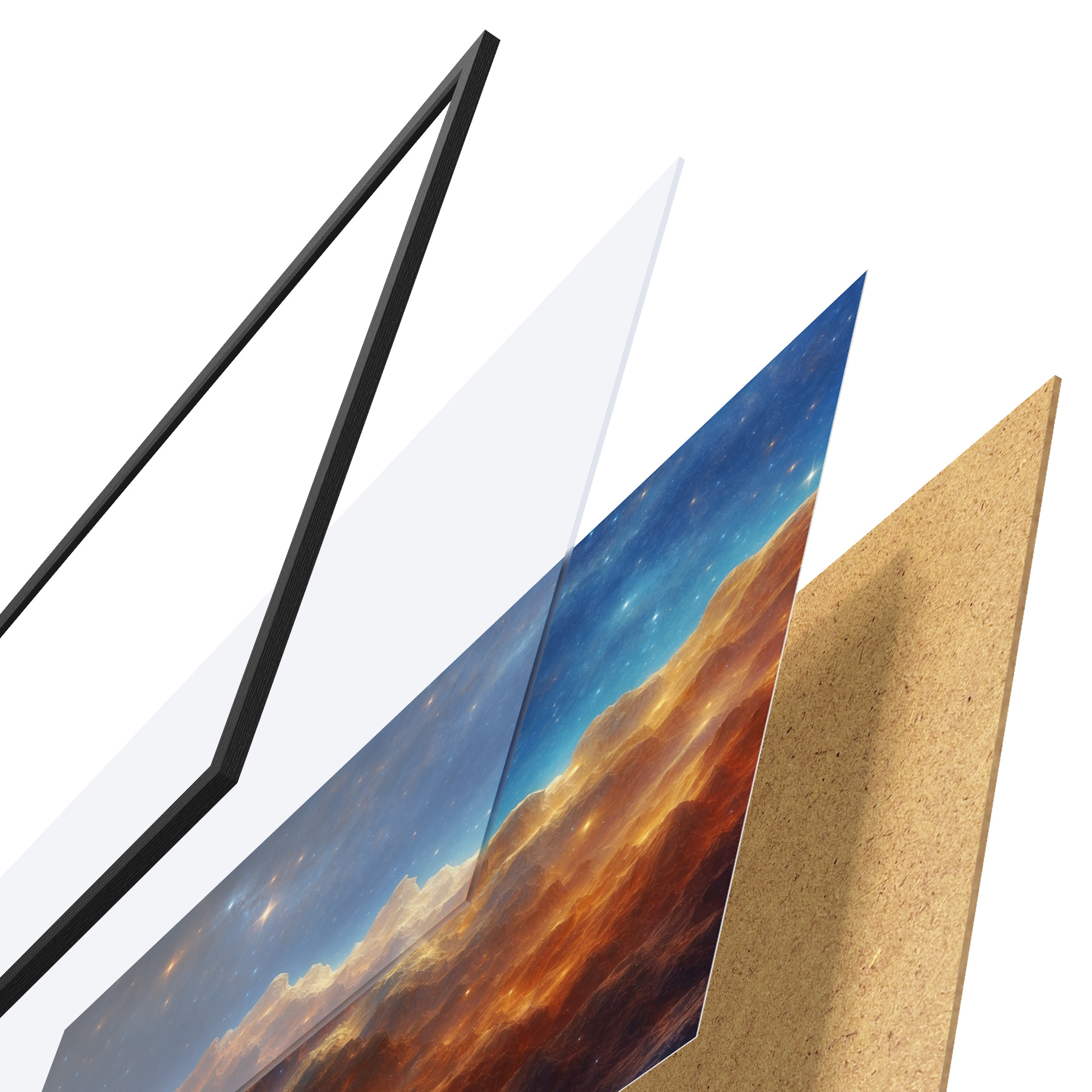 Plakatą sudaro rėmas, pleksiklas, atspausdintas vaizdas ir medžio drožlių plokštės pagrindas. Plakatą galima iš karto pakabinti ant sienos dėl kitoje pusėje esančių laikiklių.