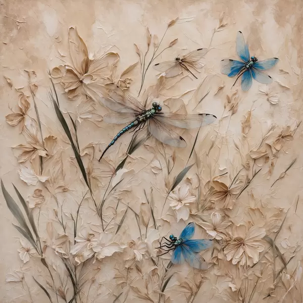 Plakatas Laumžirgiai abstrakčiame smėlio spalvos fone Ne f39600