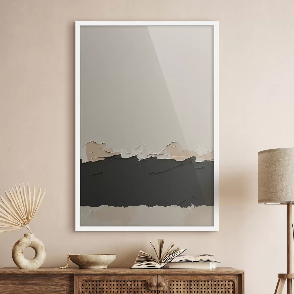 Plakatas Abstrakti tapyba balta ir juoda spalvomis f39609