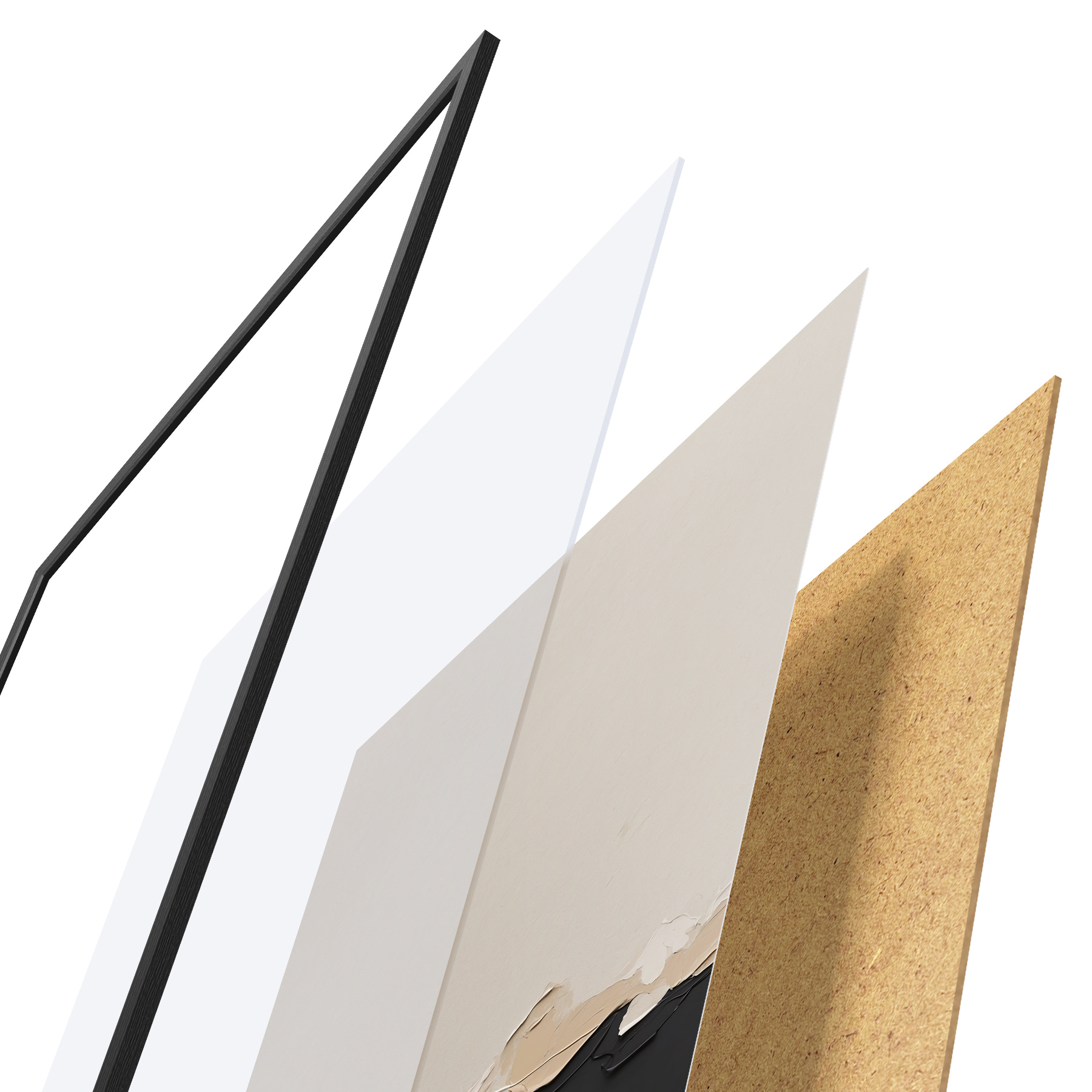 Plakatą sudaro rėmas, pleksiklas, atspausdintas vaizdas ir medžio drožlių plokštės pagrindas. Plakatą galima iš karto pakabinti ant sienos dėl kitoje pusėje esančių laikiklių.