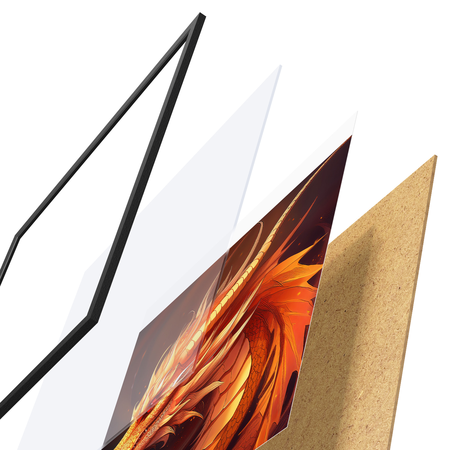 Plakatą sudaro rėmas, pleksiklas, atspausdintas vaizdas ir medžio drožlių plokštės pagrindas. Plakatą galima iš karto pakabinti ant sienos dėl kitoje pusėje esančių laikiklių.