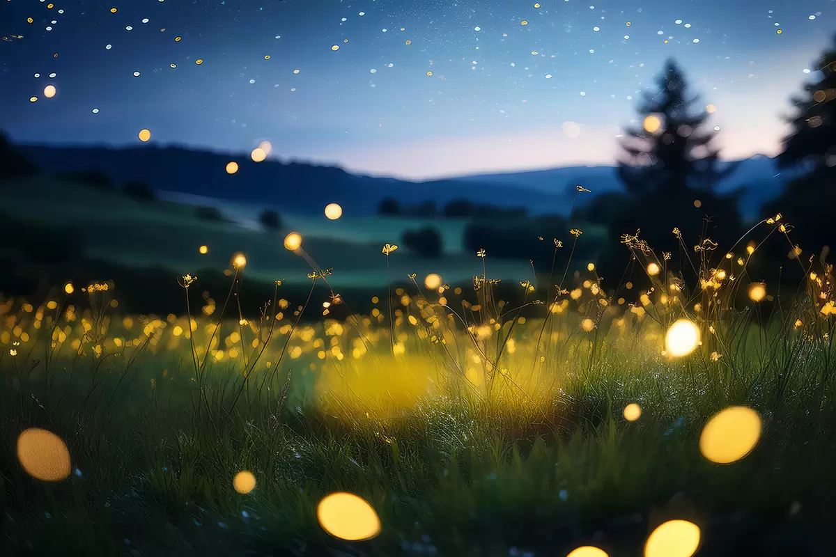 Plakatas naktis pievoje su ugniagesiais f39626