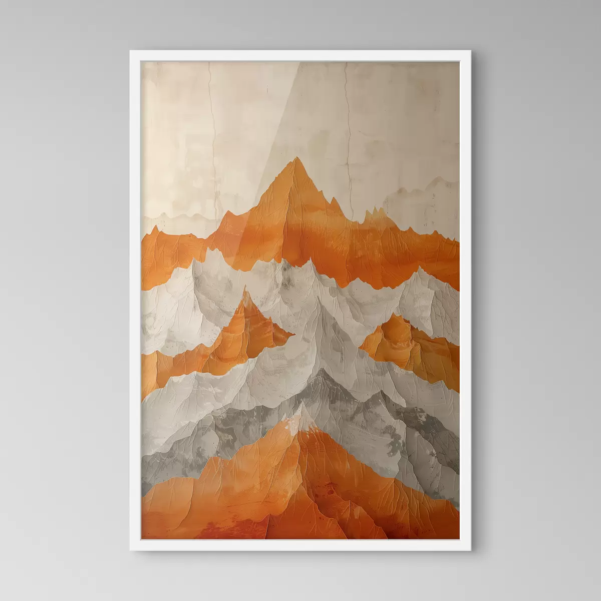 Plakatas Abstrakčios oranžinės ir smėlio spalvos kalnų grandinės: trompe-l'oeil su skulptūrinėmis detalėmis f39629