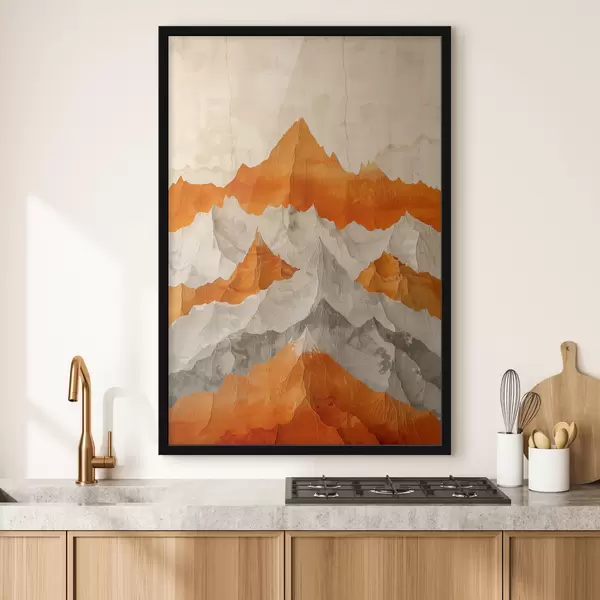 Plakatas Abstrakčios oranžinės ir smėlio spalvos kalnų grandinės: trompe-l'oeil su skulptūrinėmis detalėmis Ne f39629